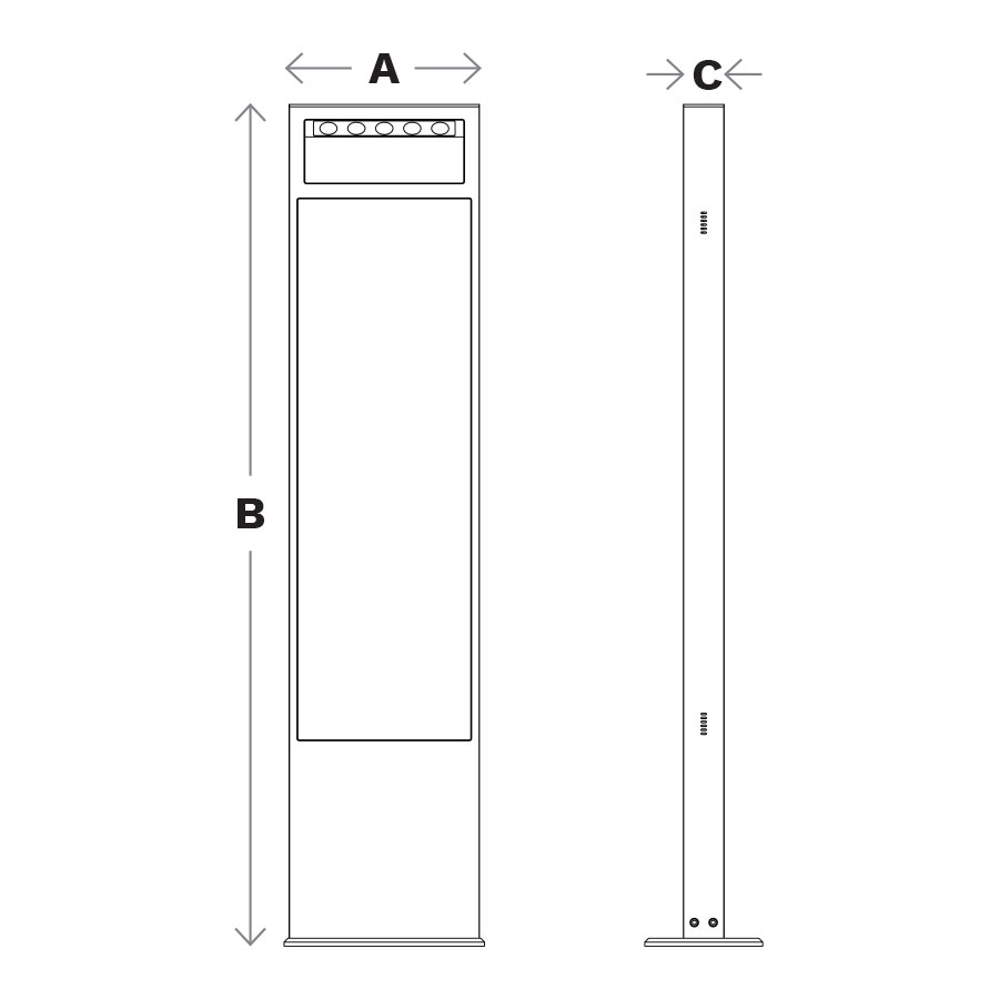 FLAMINIA's clean, minimalist design integrates vertical solar panels, ensuring it blends seamlessly into modern landscapes while avoiding the bulky look of traditional solar lighting.
