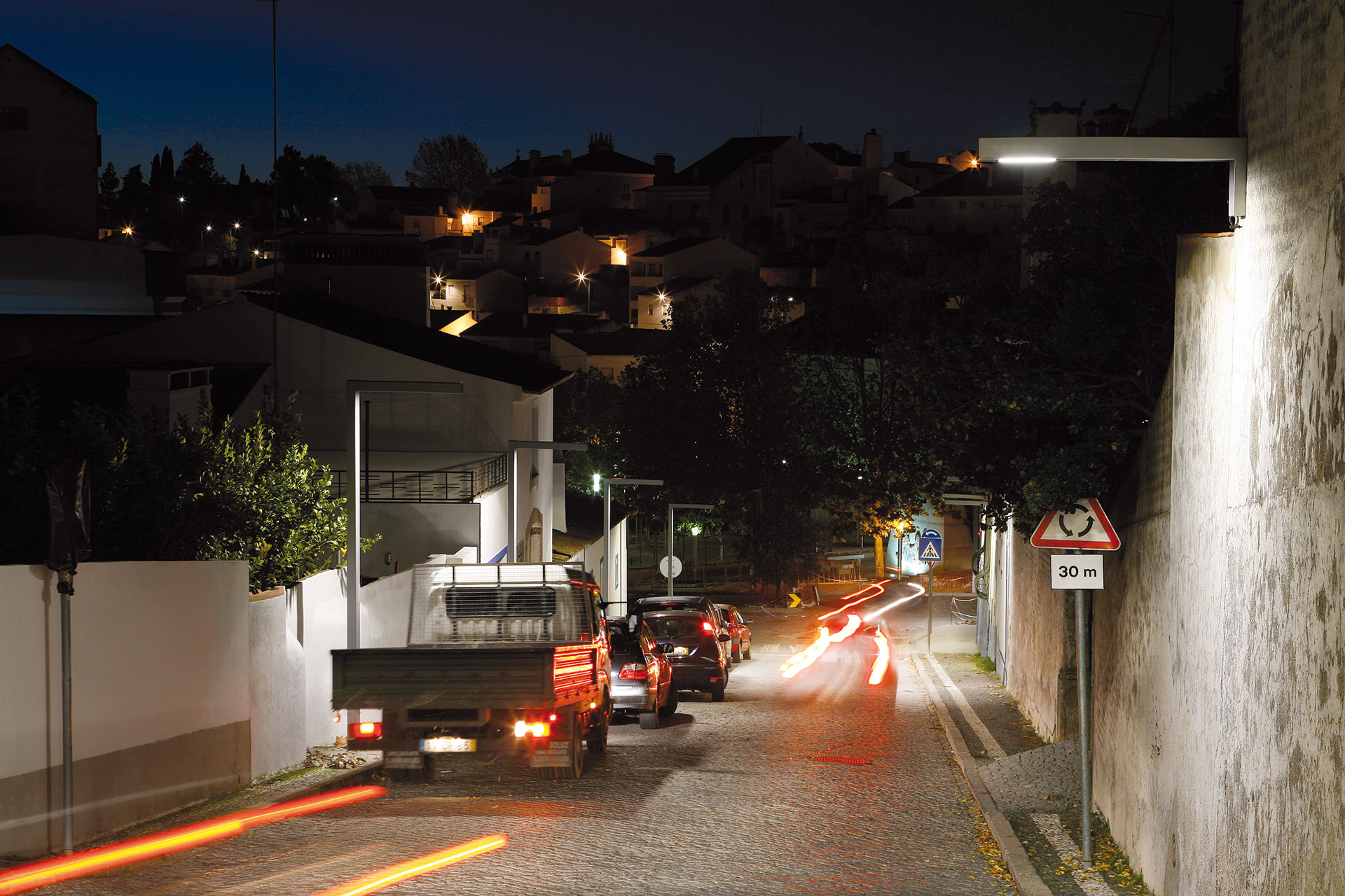 The luminaires are also equipped with a remote management system to adapt the lighting levels during the night. Each luminaire is controlled individually from a centralised system and could enable the local authorities to generate additional energy savings of 30%.